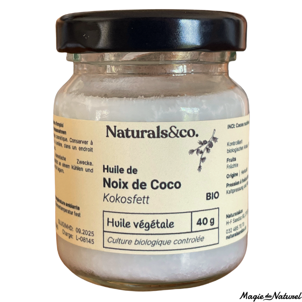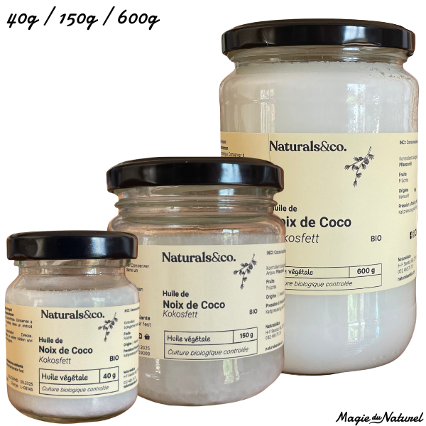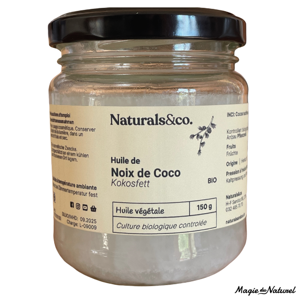 Naturals&CoL’huile végétale de Coco ou beurre de coco est reconnue pour ses propriétés adoucissantes, émollientes et protectrices exceptionnelles. De plus, s...