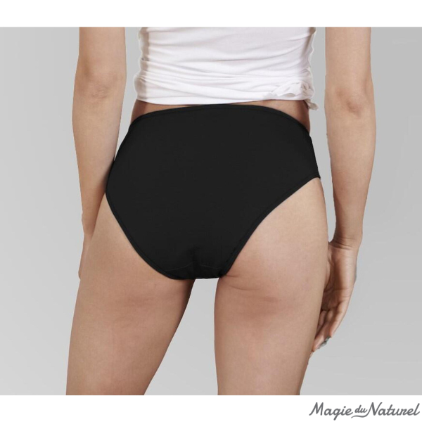 Indifférenciable d’un sous-vêtement classique. Cette culotte menstruelle vous garantira toute la sérénité de jour comme de nuit durant vos menstruations ou pour les petites pertes quotidiennes avec son noyau absorbant en coton bio assurant une protection totale jusqu’à 12 heures ( 3 à 4 tampons).